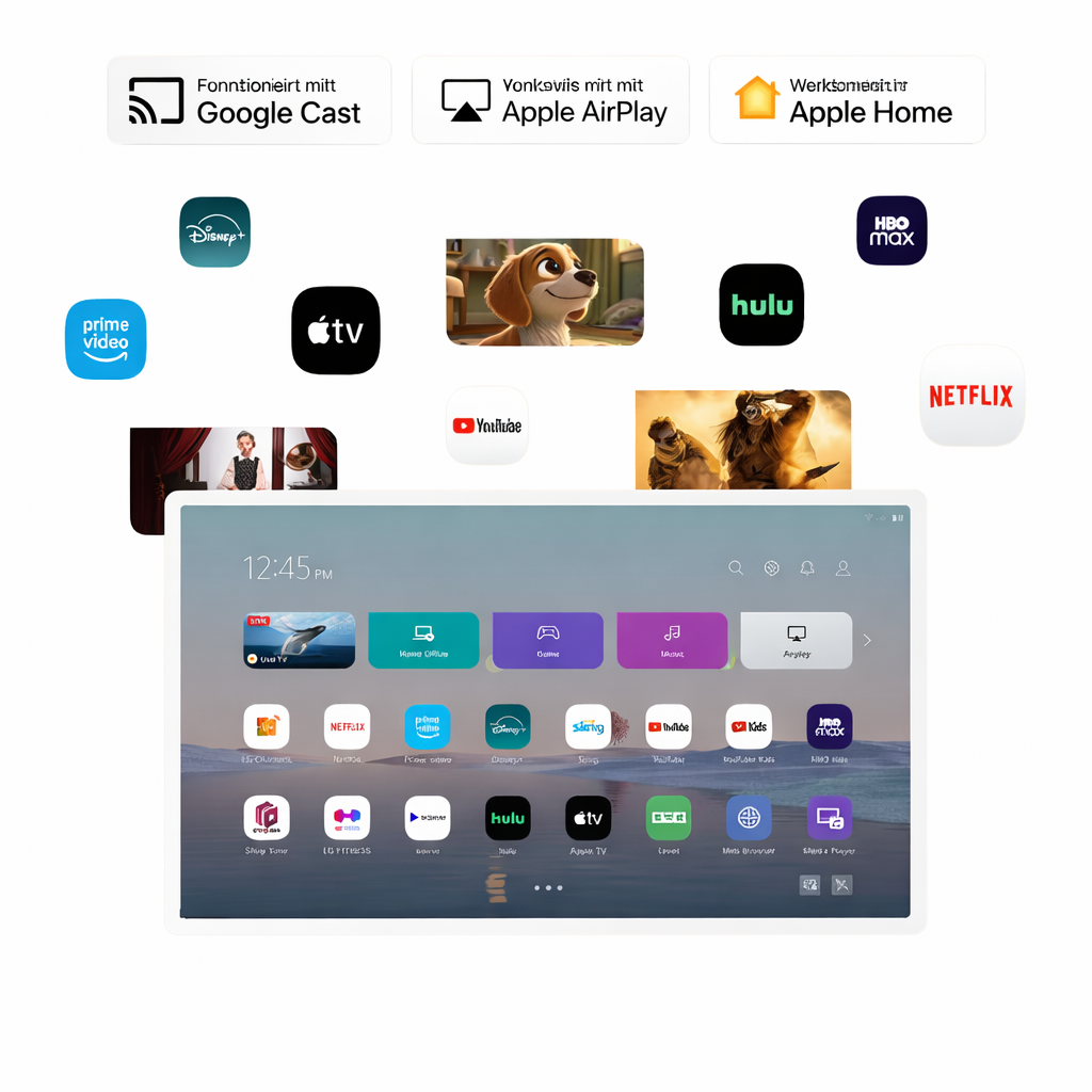 Dank der intuitiven Smart-TV-Oberfläche und der Kompatibilität mit Google Cast und Apple AirPlay haben Sie in Sekundenschnelle Zugriff auf Ihre Lieblingsinhalte – ganz ohne zusätzliche Geräte. Filme, Serien, Dokumentationen oder Kinderprogramme: Alles ist bequem im gewünschten Raum verfügbar.